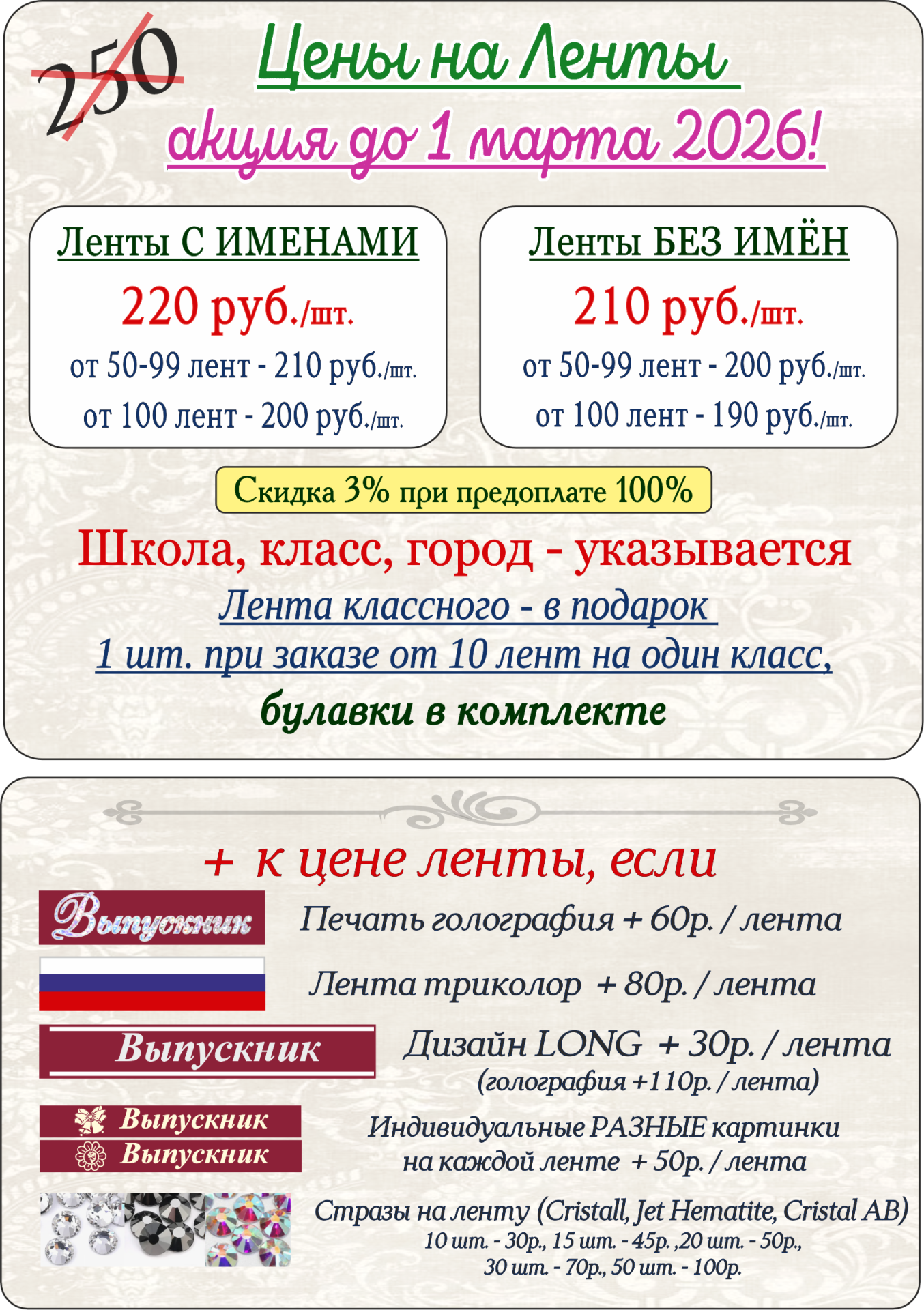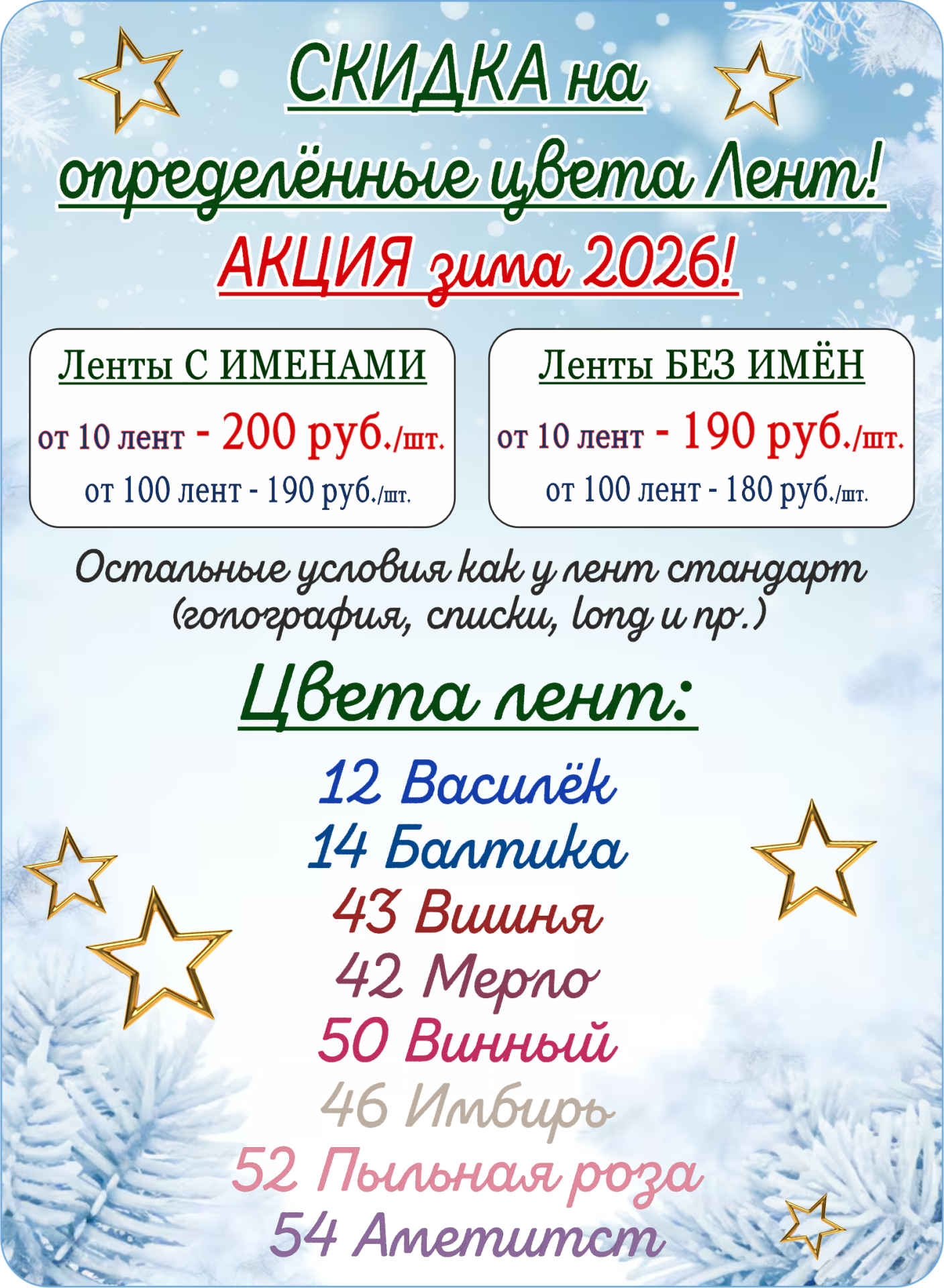 ЦВЕТА ЛЕНТ 2026 Цены + акция КАК ЗАКАЗАТЬ? Анкета заказа